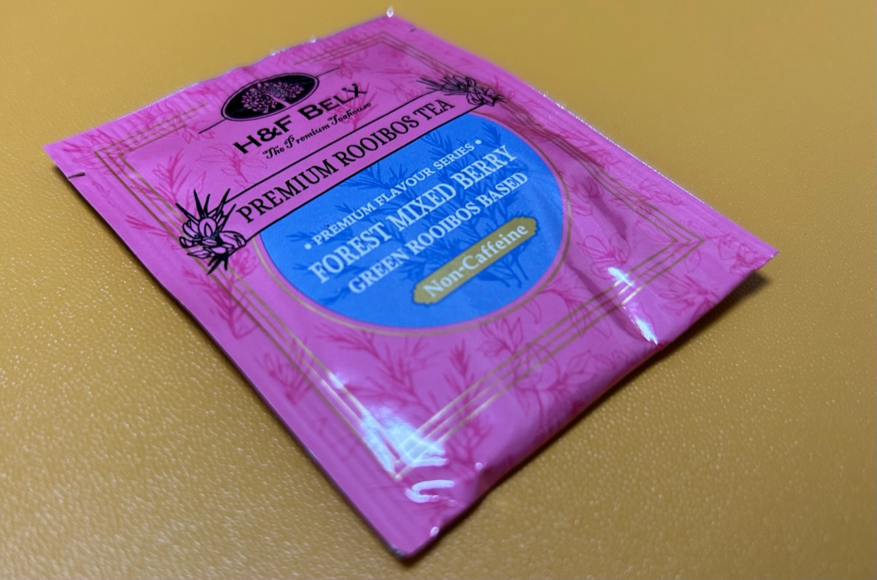 #-[H&FBELXアドカレ] 11日目!フォレストミックスドティー。ベリーの味だ…。ジャムとか入れるともっと良さそう。こちらは1包で4〜5杯って書かれてて、流石におかわり入れるかと思っている。そんなに何回も使えるんだ…ルイボスティーのティーバッグって。